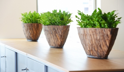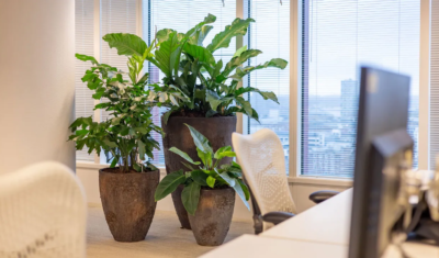 Meer groenbeleving in het moderne kantoorpand van Albrand met verschillende kantoorplanten, plantenbakken & een