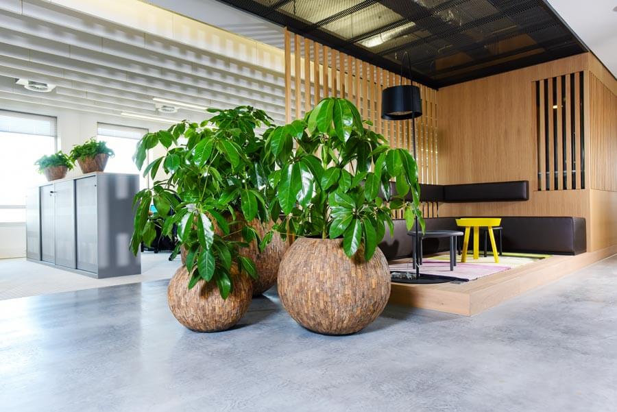 De beplanting wordt standaard afgewerkt met gebroken hydrokorrels (lecadan), maar desgewenst werken we uw nieuwe planten en bakken ook af met toppings als siergrind of boomschors. Daarmee zijn we in staat uw plant écht helemaal naar wens te maken en te zorgen voor een stijlvolle en levendige bedrijfsruimte waar bezoekers én collega’s blij van worden.